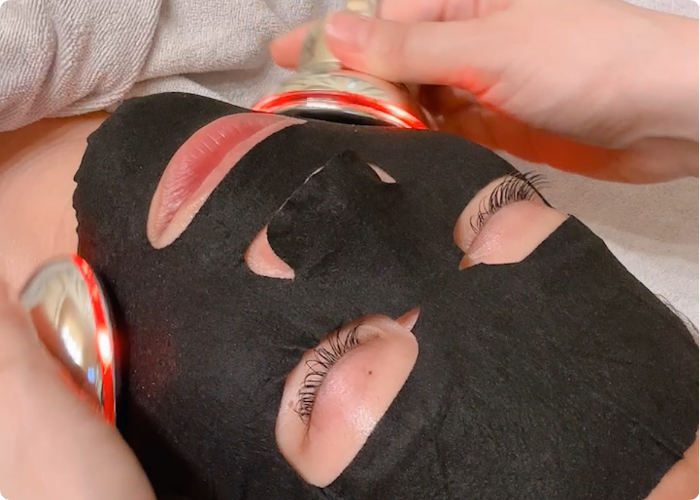 42度の温熱と微弱な振動で、クレンジングでは落としきれない角栓や毛穴汚れをやさしくオフ。マイクロカレント搭載でリフトアップも同時に叶う当店人気No.1メニューです。
